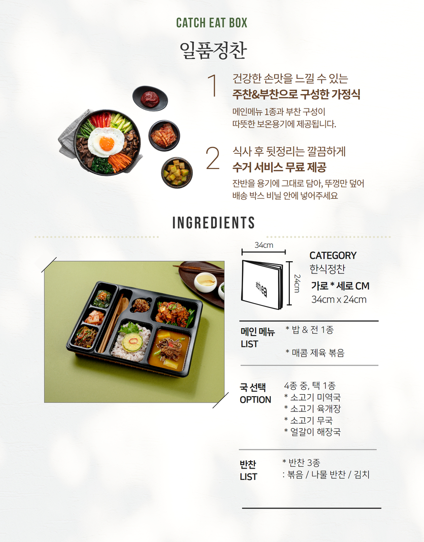 메인으로 매콤한 제육과, 국 4종 중 1 선택 가능하며, 1만원대 예산에 추천 드리는 도시락입니다.