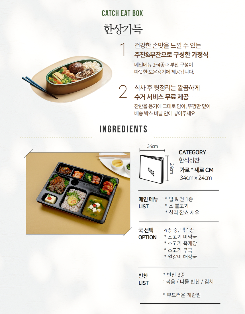 소불고기와 칠리 깐쇼새우 & 곁들이기 좋은 반찬과 국 4종 (중 1 선택 가능)으로 구성된 1만 원대 예산에 추천드리는 도시락입니다.