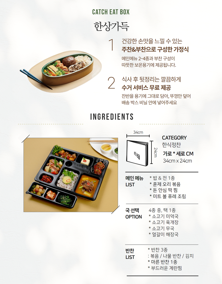 훈제오리볶음과 돈 안심 떡 찜,미트볼 퓨레 조림 & 곁들이기 좋은 반찬과 국 4종 (중 1 선택 가능)으로 구성된 2만 원대 예산에 추천드리는 도시락입니다.