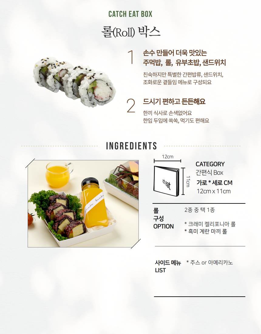 간단하고 맛있는 롤과 음료로 구성된 1만 원대 이하 예산에 추천드리는 도시락입니다.