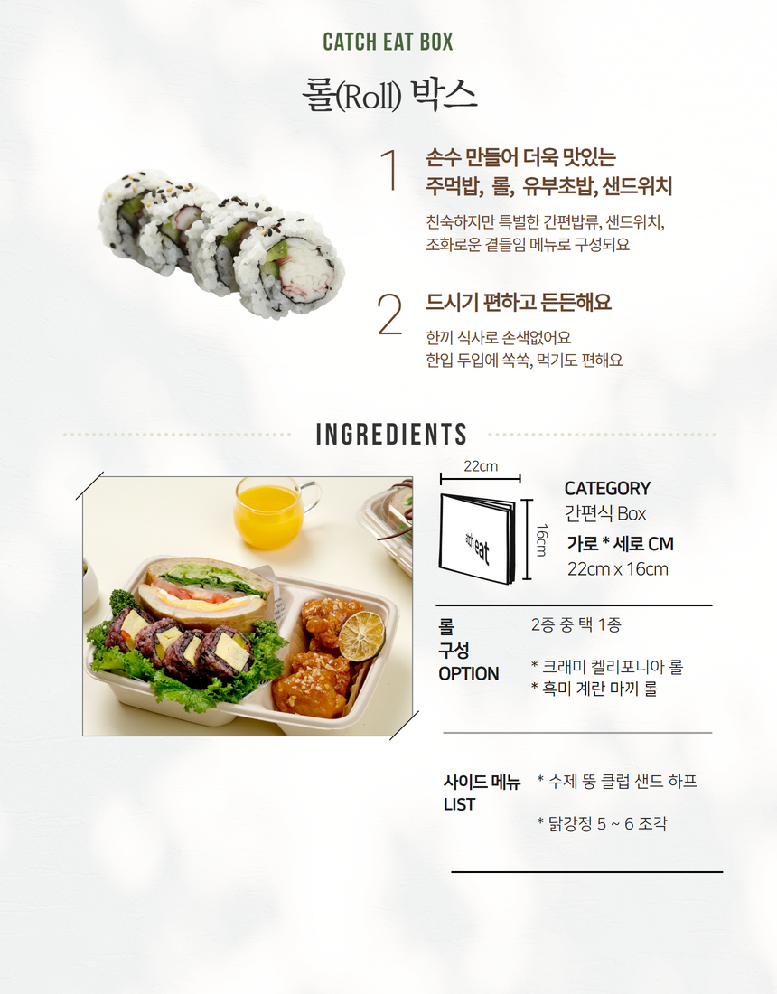 간단하고 맛있는 롤& 뚱 샌드위치와 달콤한 닭강정으로 구성된 1만 원대 예산에 추천드리는 도시락입니다.
